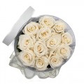 Eternal Box, una bombonera blanca con rosas preservadas que simbolizan amor eterno. Disponible en 12, 14 o 16 tallos.